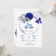 Gorgeous royal blue rose and lilies with silver rose and daisy flower botanical wreath save the date invitation .