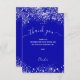 Royal blue silver glitter sparkles script thank you card