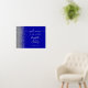 This elegant modern wedding welcome sign features a royal blue background edged with faux silver glitter. Easily customize the white text, with the names of the bride and groom in handwriting calligraphy over a large ampersand. (If you would like this sign in a different size, please be sure to avoid choosing any of the other "standard sizes," which may distort the design. Instead, scroll down to the "Choose your own size" option, and leave the "link" icon on so that the proportion of height and width remain the same.)