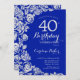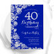 Royal Blue Silver Roses 40th Birthday Party Invitation