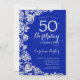 Royal Blue Silver Roses 50th Birthday Party Invitation