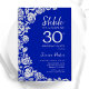 Royal Blue Silver Roses Surprise 30th Birthday Invitation