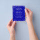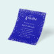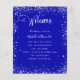 A modern, elegant wedding program, timeline. A royal blue colored background decorated with faux silver glitter dust. Personalize and add your names and wedding details. White colored letters. If you have more text it's possible to reduce the line space.