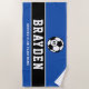 Royal Blue Soccer Player Custom Name Beach Towel