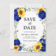 Elegant and modern rustic country wedding save the date card features bright yellow sunflower, Royal blue peonies , baby’s breath, gypsophila floral frame / wreath with eucalyptus leaves and gold glitter frame. Please find more matching designs and variations from my "blissweddingpaperie" store. And feel free to contact me for further customization or matching items.