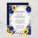 Royal Blue Sunflower Geometric Wedding Details Enclosure Card