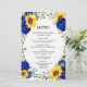 Elegant and modern rustic country wedding menu features bright yellow sunflower, Royal blue peonies , baby’s breath, gypsophila floral frame / wreath with eucalyptus leaves and gold glitter frame. Please find more matching designs and variations from my "blissweddingpaperie" store. And feel free to contact me for further customization or matching items.