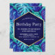 Royal Blue Teal Gold Foil Tropical Leaves Birthday Invitation
