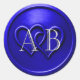 Royal Blue Two Hearts Silver Monogram Wedding Classic Round Sticker