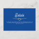 Minimalist, modern, elegant, royal blue wedding details card with gold rope heart and simple calligraphy script.
