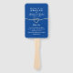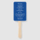 Modern, minimalist, elegant, simple calligraphy royal blue wedding program hand fans with gold rope heart.
