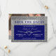 Announce your special day with this glamorous royal blue and silver save the date card. Featuring a silver glitter-look border, elegant serif typography, and a romantic metallic rope heart accent, this design brings a bold and formal touch to your wedding stationery. The rich blue and silver color palette is ideal for winter weddings, New Year’s events, or any elegant celebration. Fully customizable with names, dates, and city details. Back side includes space for a personal photo.