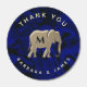 Simple, modern, luxury royal blue wedding thank you candy favor with faux gold monogram elephant and modern calligraphy.