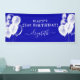 For a girly and glamorous 21st (or any age) birthday party. A royal blue background. Decorated with white balloons. Personalize and add a name and age 21. White letters. The name is written with a modern hand lettered style script with swashes.