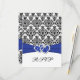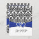 Royal Blue, White, Black Damask & Hearts RSVP Card