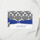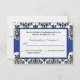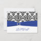 This black and white damask reply card with a blue PRINTED ON ribbon and jeweled brooch matches the wedding invitation shown below. If you require any other matching items, or would like it in another color combination, please email niteowlstudio@gmail.com with your request.