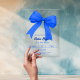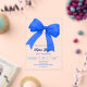 A clear, transparent background, decorated with a large royal blue bow. Personalize and add a name and party details.