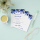 A white background, decorated with blue and white flowers. Personalize and add your names and details.