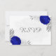 royal blue &white flowers silver botanical wedding RSVP card