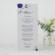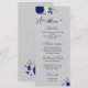 royal blue white flowers silver leaves wedding menu