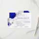 Romantic royal blue & white flowers with silver leaves botanical wedding response card with meal choice option.