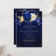 Royal Blue White Gold Metallic Floral Wedding Invi Invitation