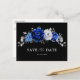 Royal Blue White Silver Floral Save the Date Postc Postcard