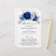 Elegant royal blue white silver theme wedding program featuring elegant bouquet of royal blue, Navy, silver, pure white color rose flowers buds and sage green eucalyptus leaves. Please contact me for any help in customization or if you need any other product with this design.
