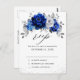 Royal Blue White Silver Floral Wedding RSVP Postcard