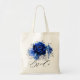 Royal Blue White Silver Metallic Floral Bride Tote Bag