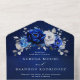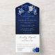 Royal Blue White Silver Metallic Floral Wedding Al All In One Invitation