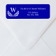 Royal blue white wreath monogram return address label