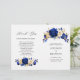 Elegant royal blue gold theme wedding program featuring elegant bouquet of royal blue, Navy, gold, yellow color rose flowers buds and eucalyptus leaves. Please contact me for any help in customization or if you need any other product with this design.