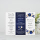 Elegant royal blue gold theme wedding program featuring elegant bouquet of royal blue, Navy, gold, yellow color rose flowers buds and eucalyptus leaves. Please contact me for any help in customization or if you need any other product with this design.