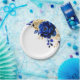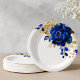 Elegant royal blue gold theme wedding paper plate featuring elegant bouquet of royal blue, Navy, gold, yellow color rose flowers buds and eucalyptus leaves. Please contact me for any help in customization or if you need any other product with this design.