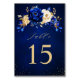 Royal Blue Yellow Gold Metallic Floral Wedding Table Number