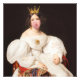 Vintage painting pop art of a woman in a white dress with a gold crown blowing a pink bubble gum
