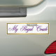 Purple text reads My Royal Coach with a crown over text and a gold tone frame boarder around this fun bumper sticker.