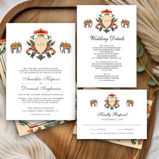 Royal Crest Elephant Indian Wedding Save the Date