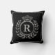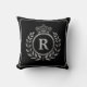 Royal Crown Laurel Wreath Black Silver Monogrammed Throw Pillow
