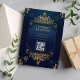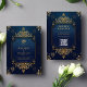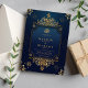 Royal dark blue Gold Floral QR Code Muslim Wedding Invitation