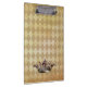 A regal, royal crown adorns this ancient parchment. A clipboard fit for a medieval monarch.