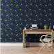 Royal Elegant Blue & Gold floral Botanical Pattern Wallpaper