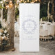 Make a grand statement on your wedding day with this luxurious personalized retractable banner, featuring a classic floral crest emblem and refined typography. This premium wedding welcome sign is perfect for greeting guests, creating a stunning entrance, or enhancing your reception décor.