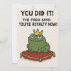 A smug green frog wearing a golden crown lounges proudly on a red velvet cushion, declaring: “You did it! The frog says you’re royalty now!” This humorous and quirky congratulatory design is perfect for graduations, achievements, or any moment worth celebrating with a royal touch and a bit of sass.