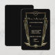 Unique Glam, Vintage card design featuring a faux gold art deco shape with a crest for your initials, faux gold Fleur-de-lis as a royal heritage, a Roaring 1920's Great Gatsby, old Hollywood style, gorgeous fonts on a black background. Use Customize tool to add your information. For more, visit please, my Royal Gold Art Deco Monogram Wedding Collection.