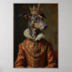 An elegant royal portrait featuring the graceful Greyhound portrayed as a renaissance noble. Inspired by classical European oil paintings, the design highlights the breed’s slender build and regal posture with luxurious aristocratic attire and crown.