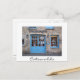 Photo postcard of the blue doors in the Cotswold stone storefront of the royal Highgrove Shop, owned by Prince Charles, the Prince of Wales, in Tetbury in the Cotswolds, England, UK with a white border and the text: 'Cotswolds'.