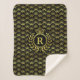 You won't find a more stylish way to keep yourself warm than this Roaring-Twenties-inspired, upscale sherpa blanket. Fit for royalty, the design includes an elegant laurel wreath and crown motif in faux (printed) gold and black, complete with your personalized monogram. A scallop | shell pattern completes this 20s Art Deco blanket. Fill in the template to add your custom monogram.
