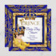 Royal Prince Baby Shower Blue Gold Brunette Invitation